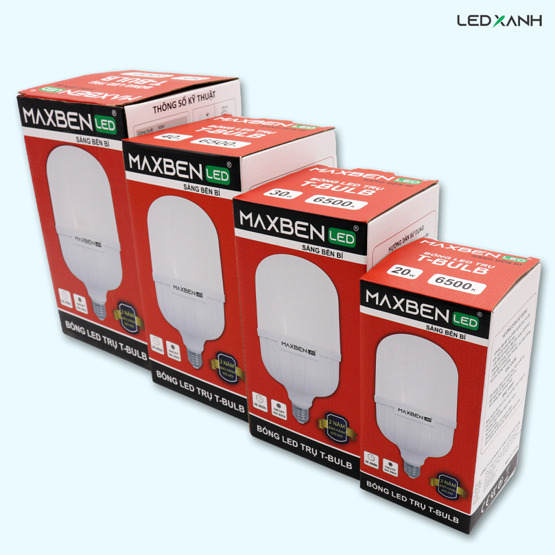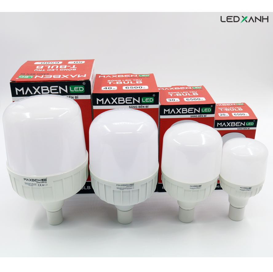 Đánh giá chi tiết đèn led bulb trụ E27 Maxben 20W, 30W, 40W, 50W